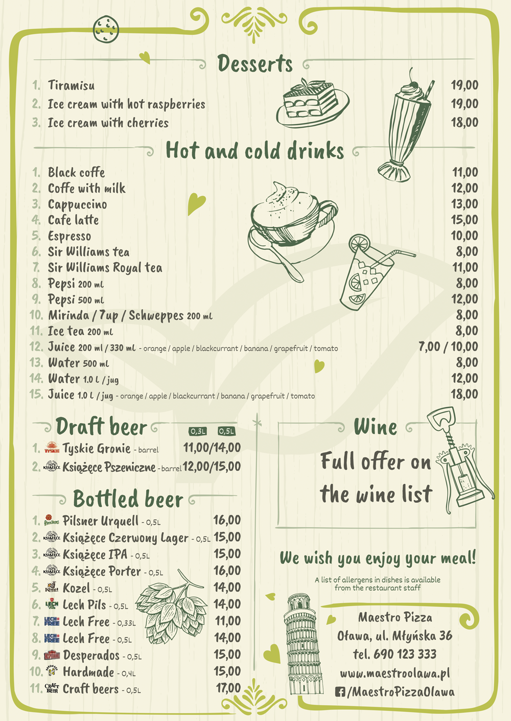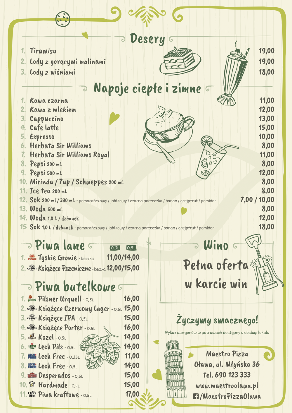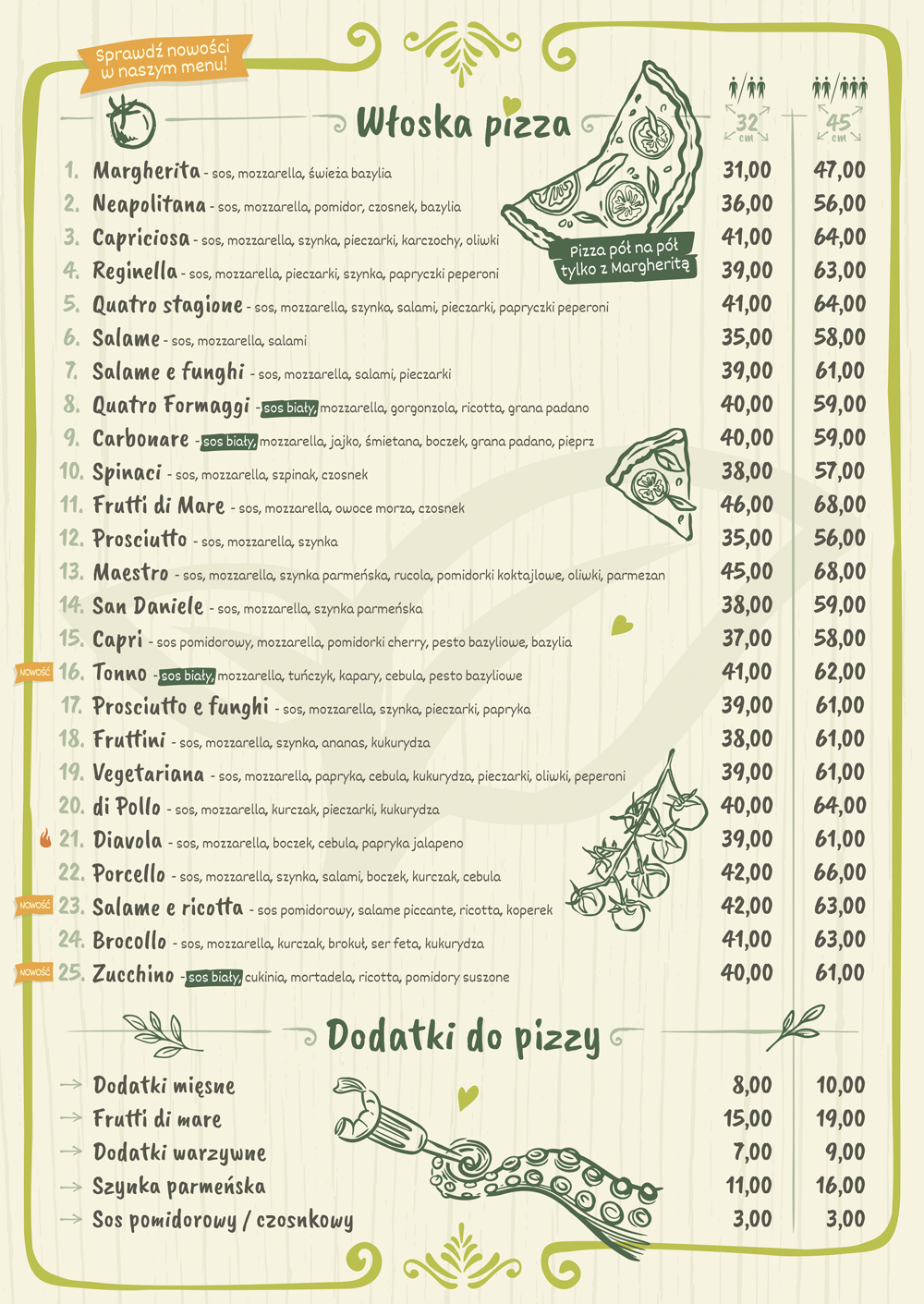 Jesteśmy jedynym lokalem w Oławie oferującym pizzę z pieca opalanego drewnem, która w połączeniu ze świeżymi, wysokiej jakości składnikami tworzy produkt o niepowtarzalnym smaku.